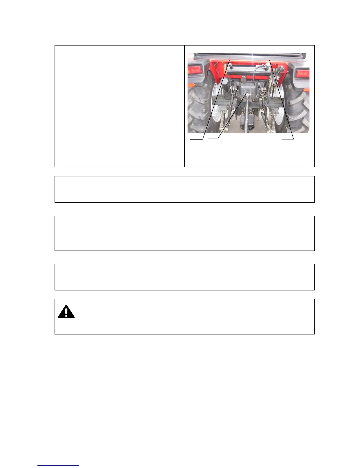 NOTE: Park the tractor on level ground, lower the lift arm to the lowest position and shut down the engine