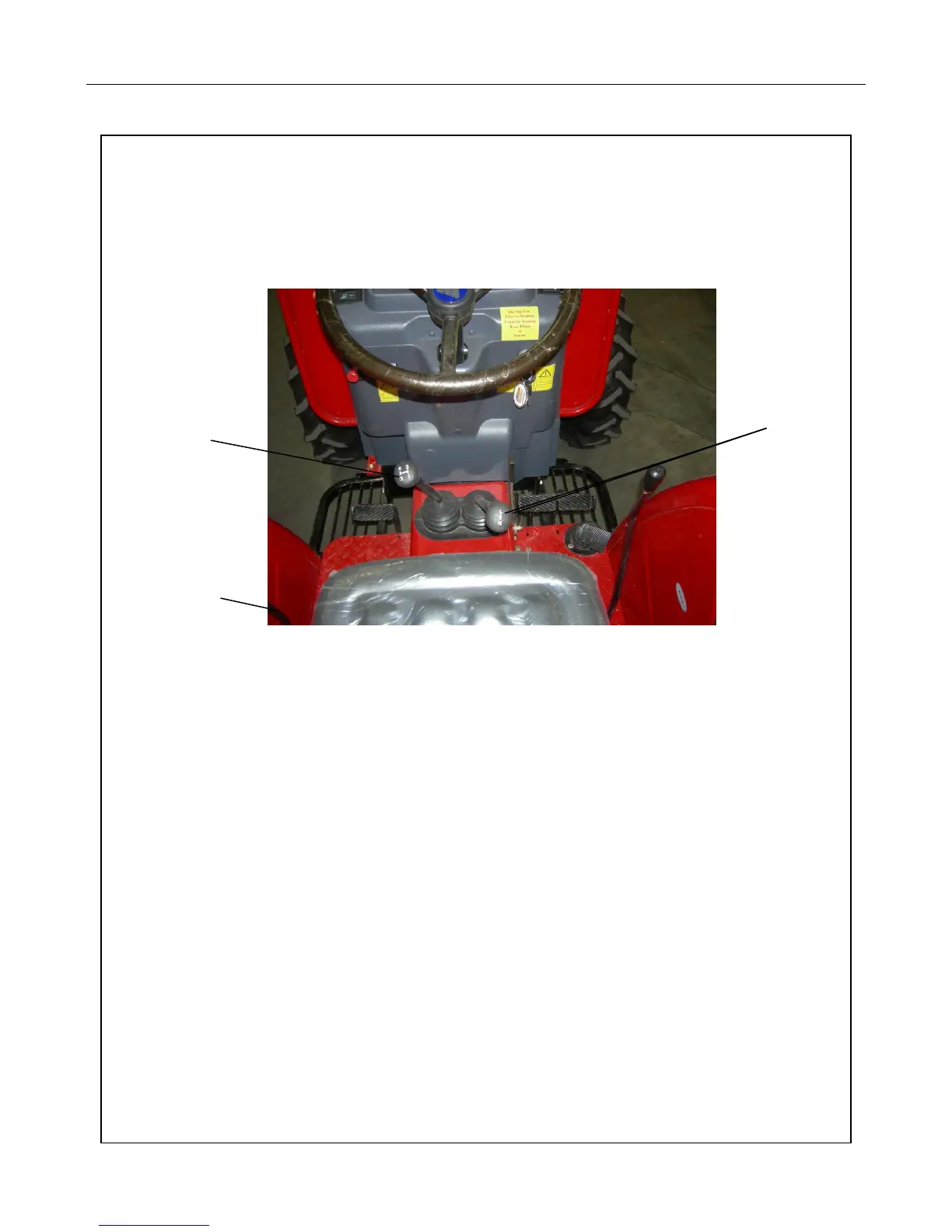 located to the driver’s left, outboard of the two hydraulic control handles.