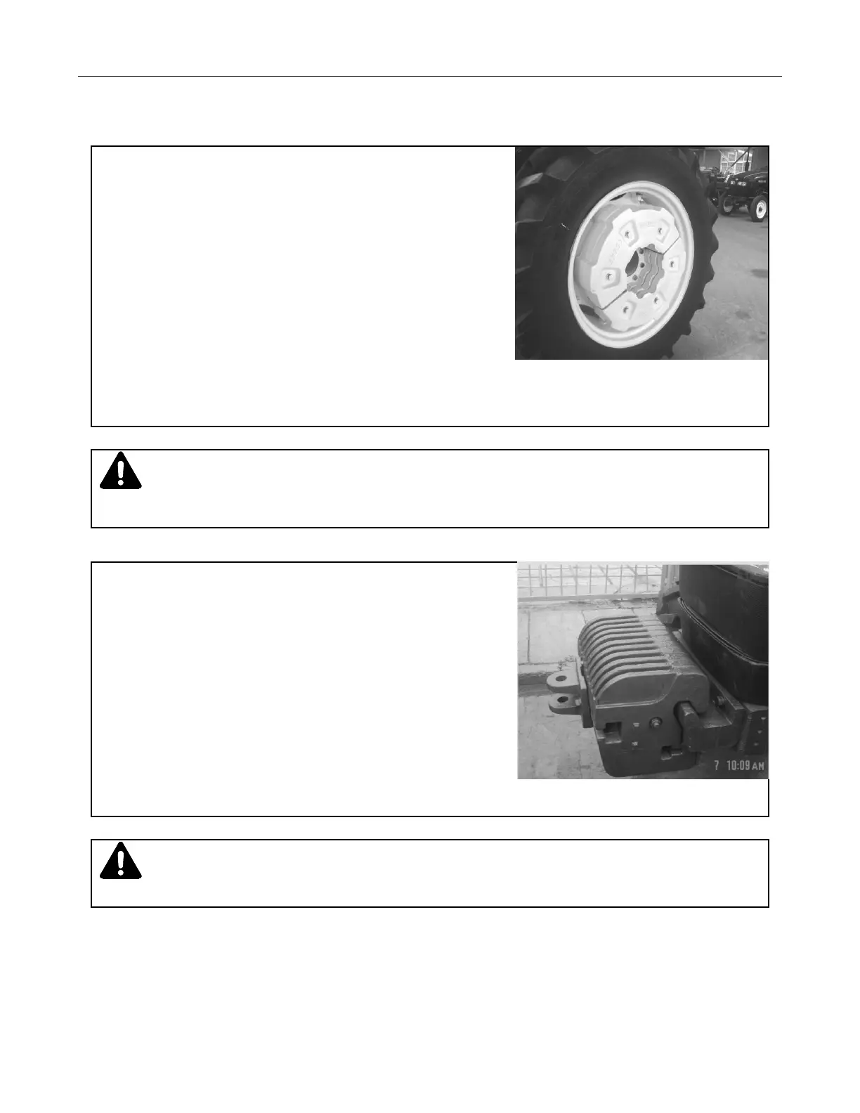 implements, you must mount enough front counter weight in order