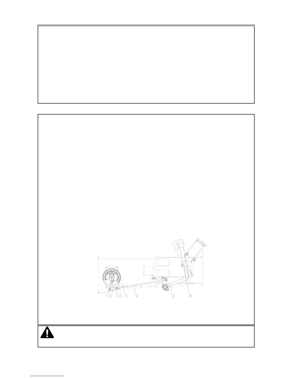 Warning: Adjust the free strokes so that the left and right brake pedals are consistant, or the tractor