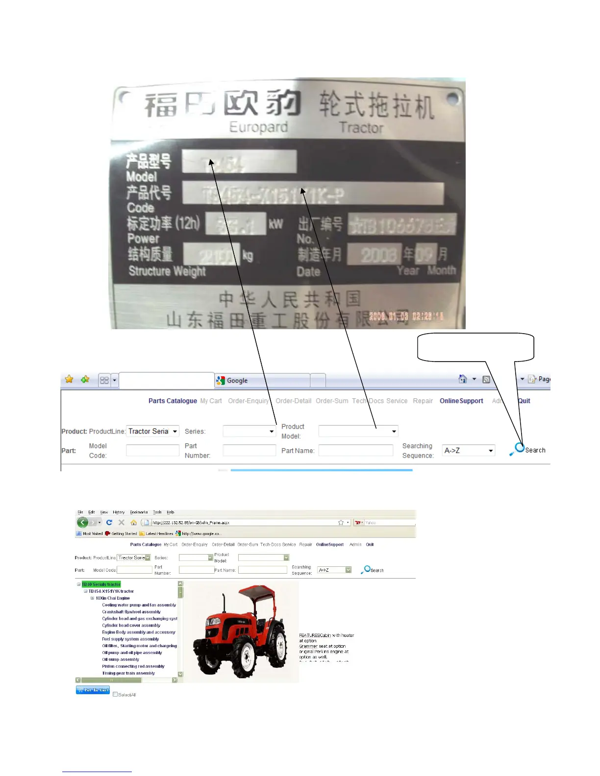 Then you can find the parts catalog and diagram of the tractor: