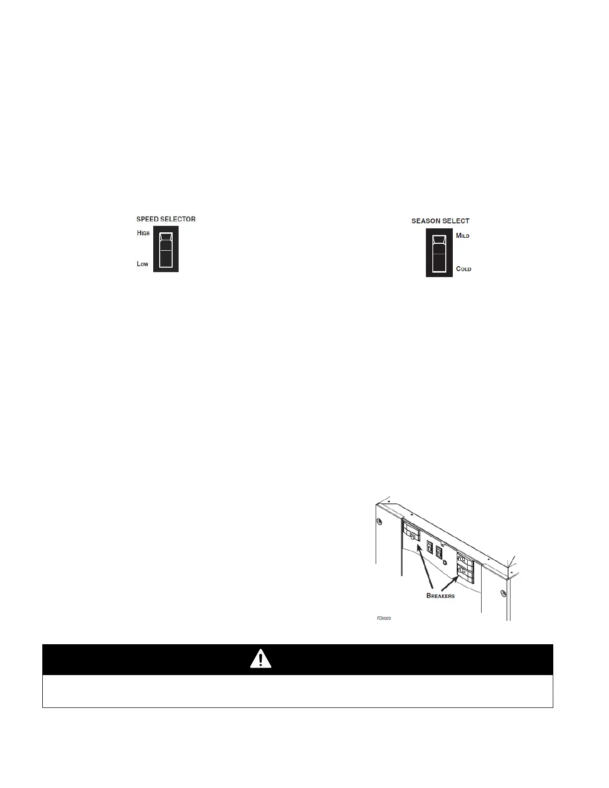 The blower will run at low speed or higher speed (as selected by SPEED SELECTOR switch).