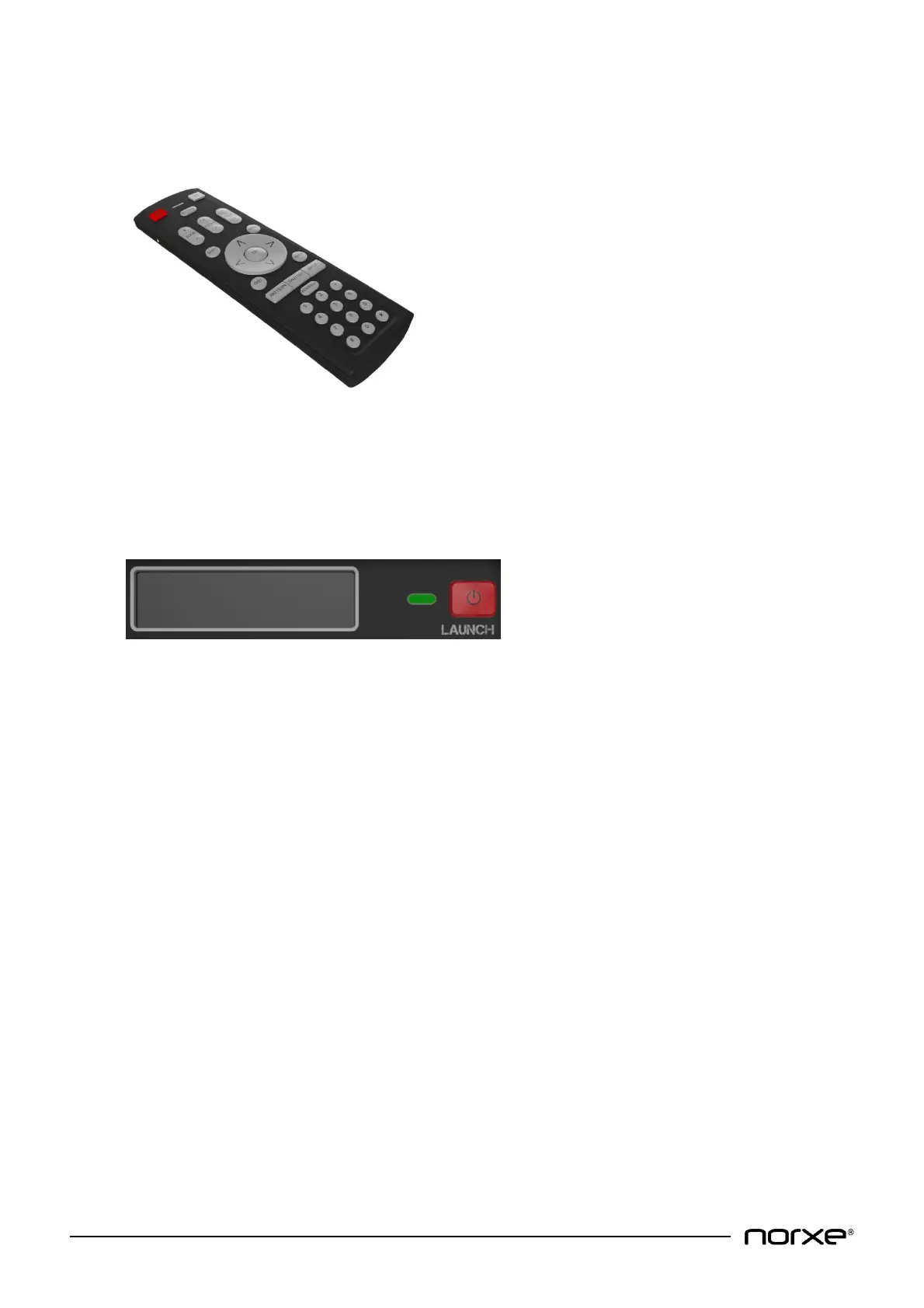 LAUNCH (power on / off) button. The status indicator light is used to display projector status, the LCD is used to