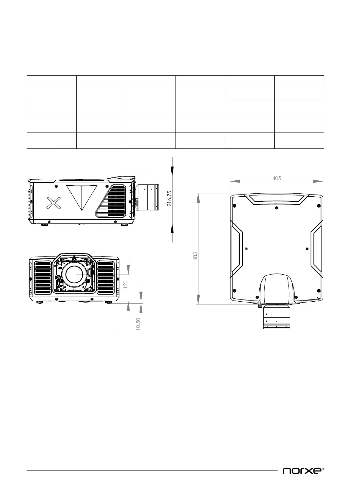 All data is provided for the projector only (excluding the projection lens).