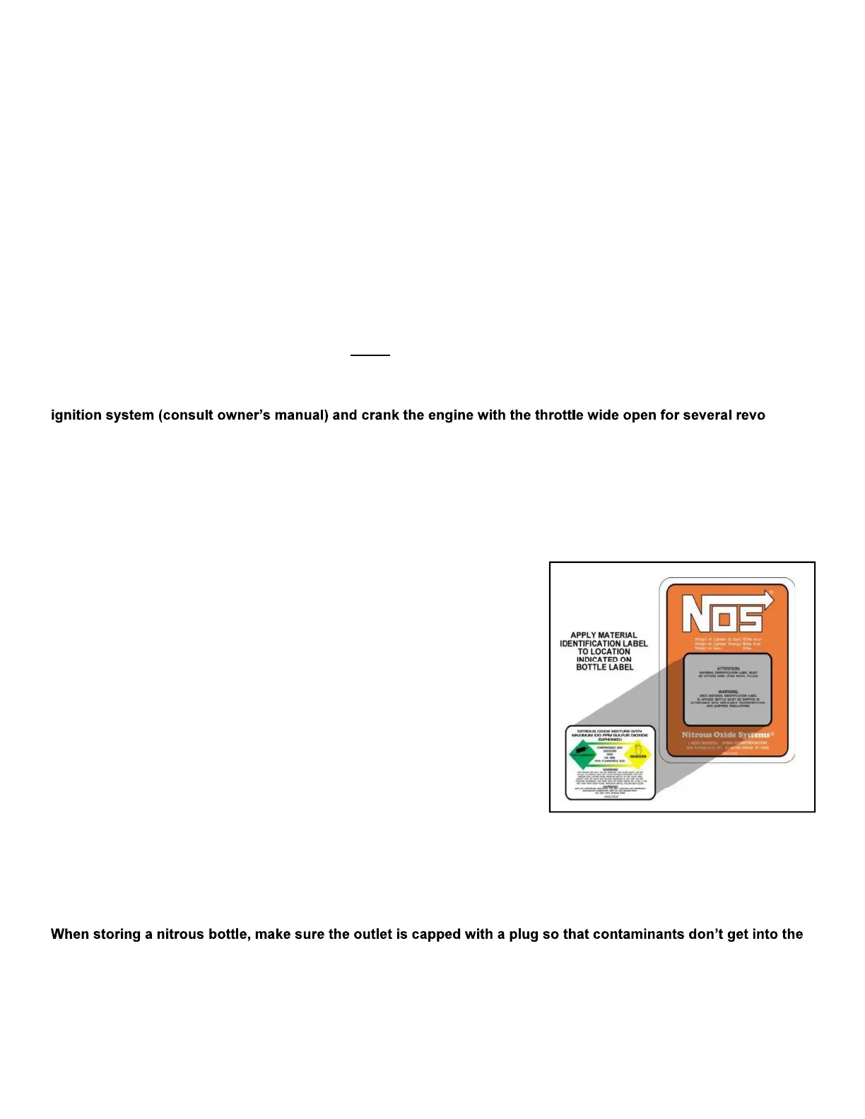 Do not deface or remove any markings, which are used for content identification. Nitrous bottle valves should
