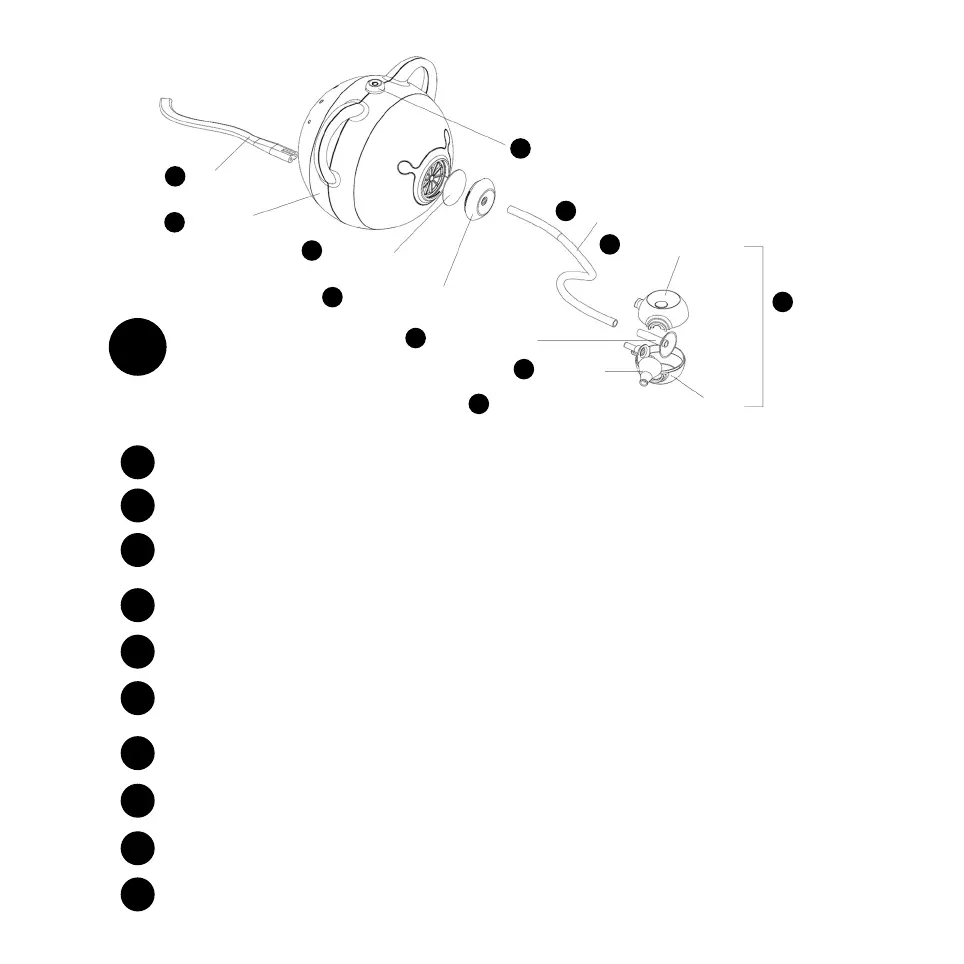 6. Tube d’aspiration 7. Tube d’aspiration avec collet 8. Boîtier de la tête 9. Embout nasal