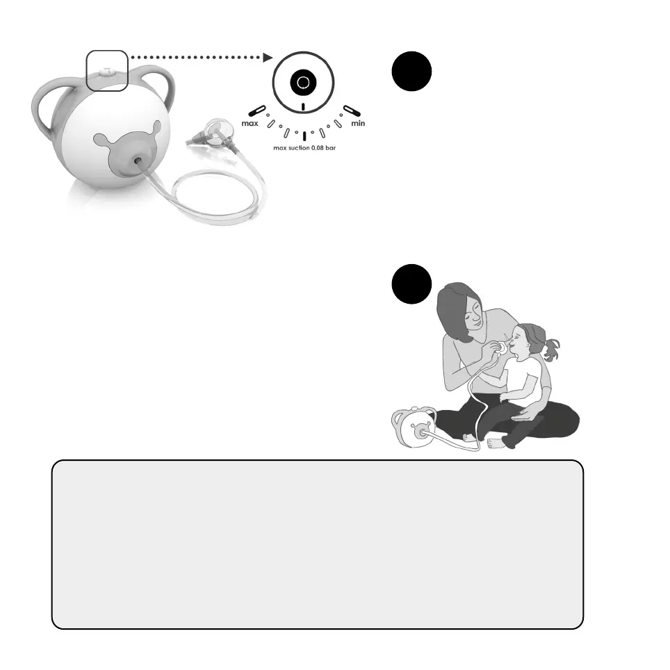 Die vorgeschlagene Einsatzdauer des Nasensaugers beträgt 10 Sekunden je Nasenöffnung.