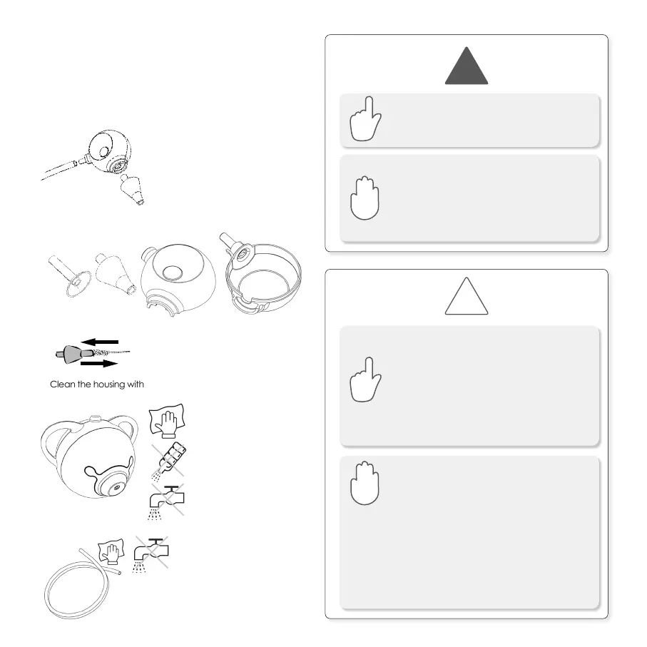 3. Clean the housing with a dry, soft cloth; do not use any liquids,