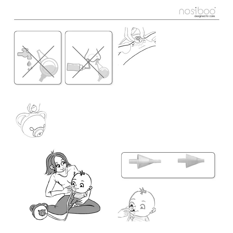 5. Insérer l’embout nasal propre et sec dans la narine de l’enfant.