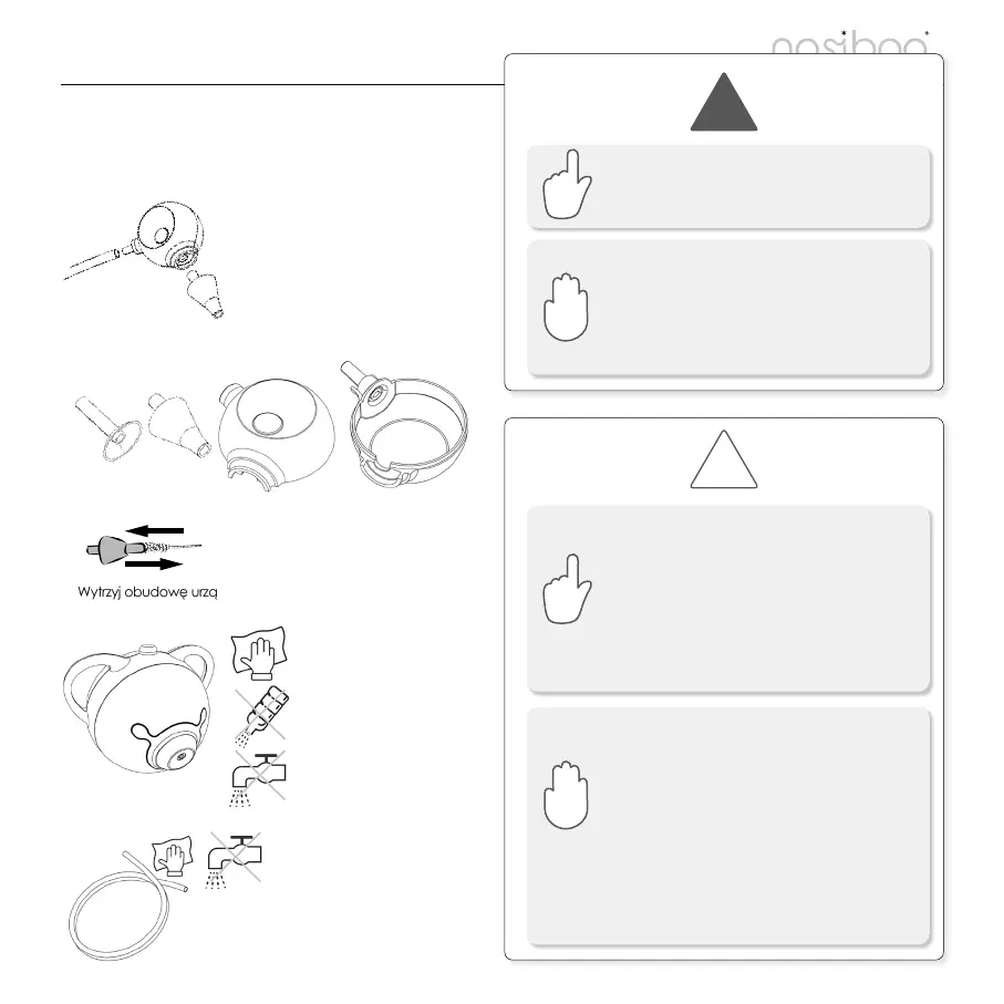 2. Umyj rurkę ssącą z kołnierzem, końcówkę do nosa i elementy