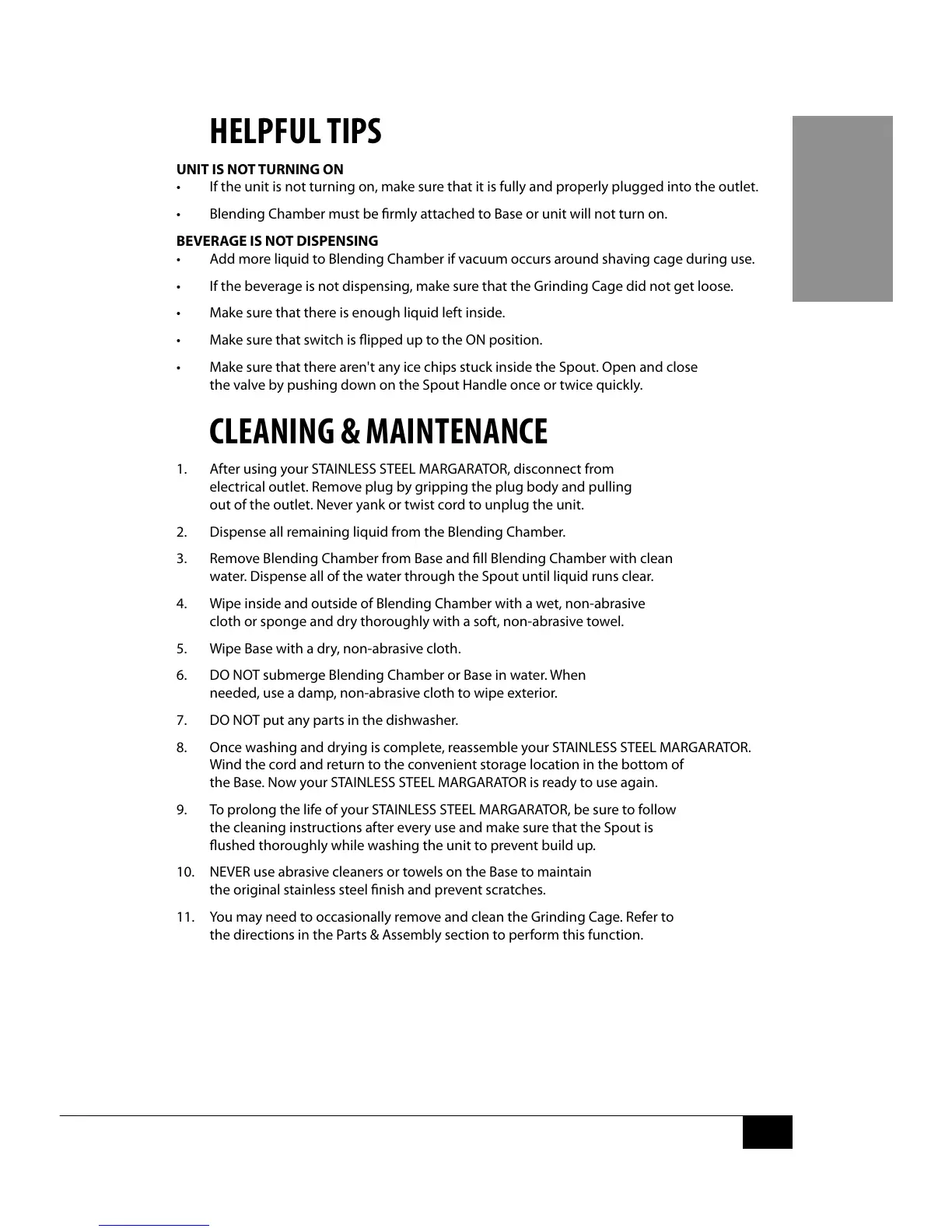 9. ToprolongthelifeofyourSTAINLESSSTEELMARGARATOR,besuretofollow