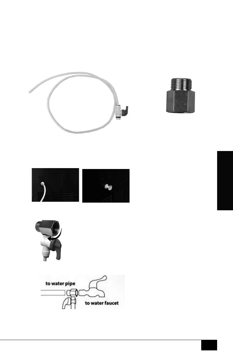 3. Un lado del accesorio se atornillará a la tubería de agua mientras
