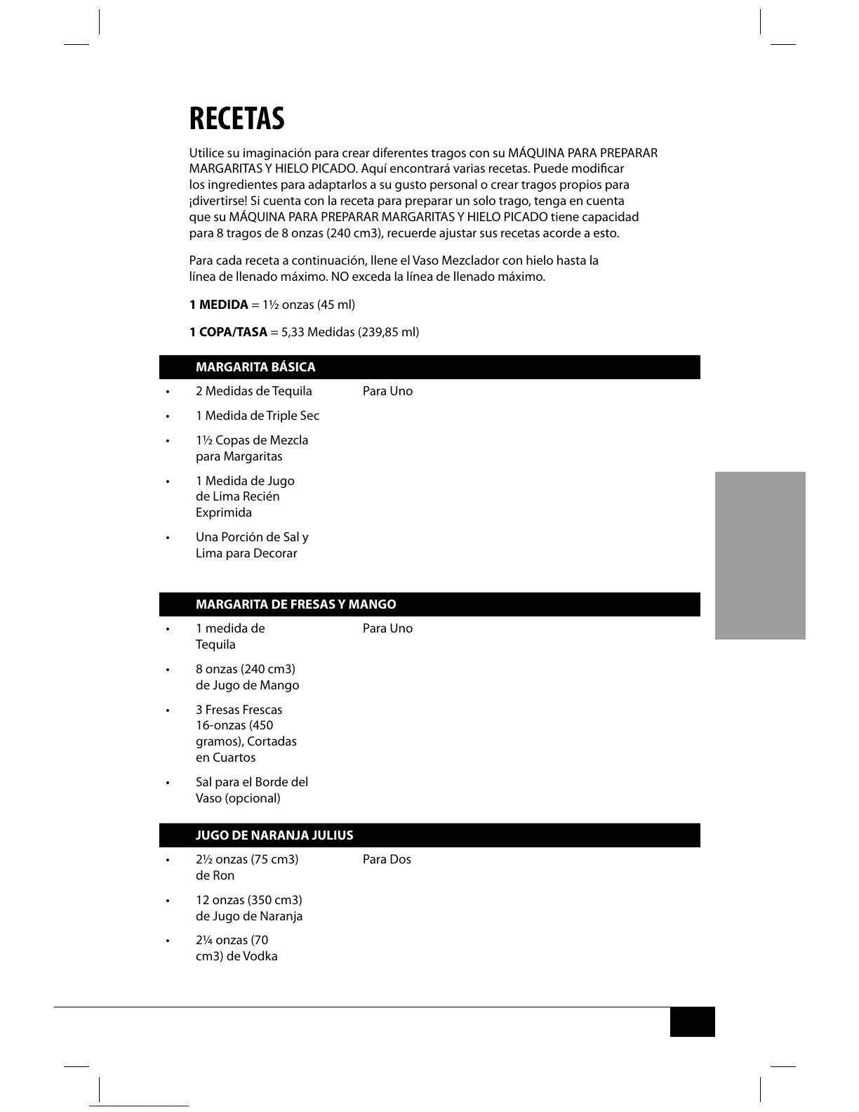 para 8 tragos de 8 onzas (240 cm3), recuerde ajustar sus recetas acorde a esto.