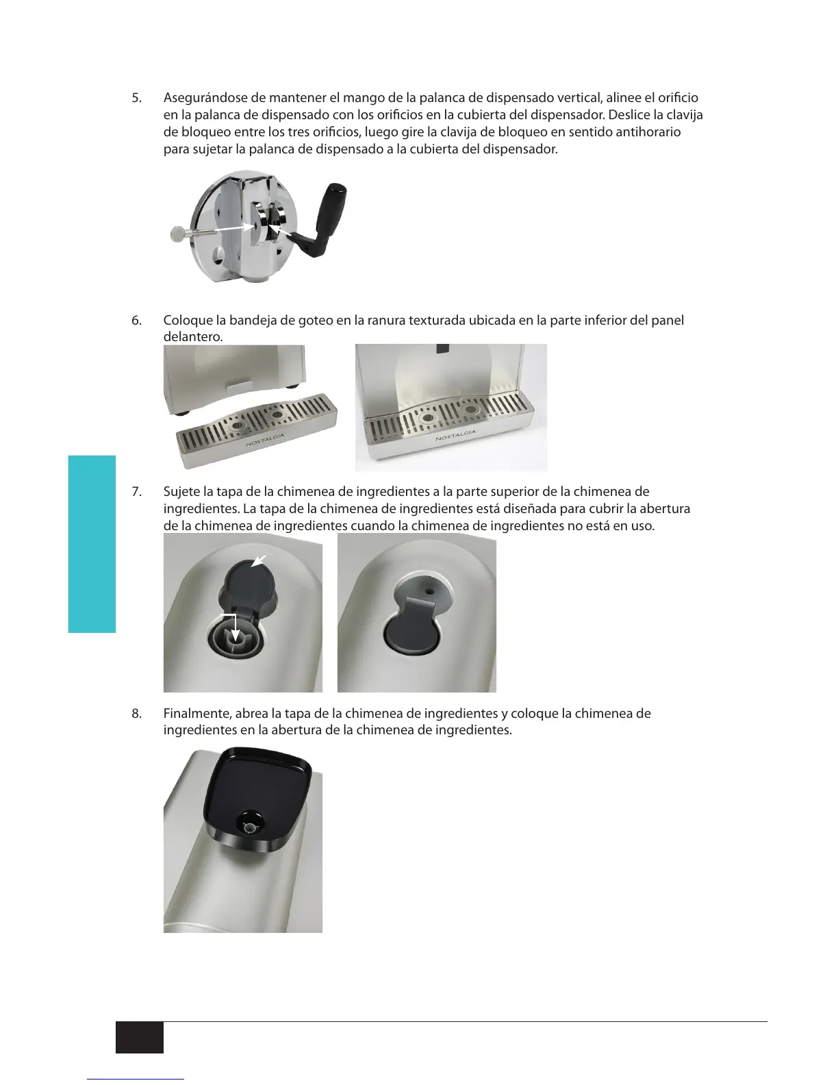 5. Asegurándose de mantener el mango de la palanca de dispensado vertical, alinee el oricio