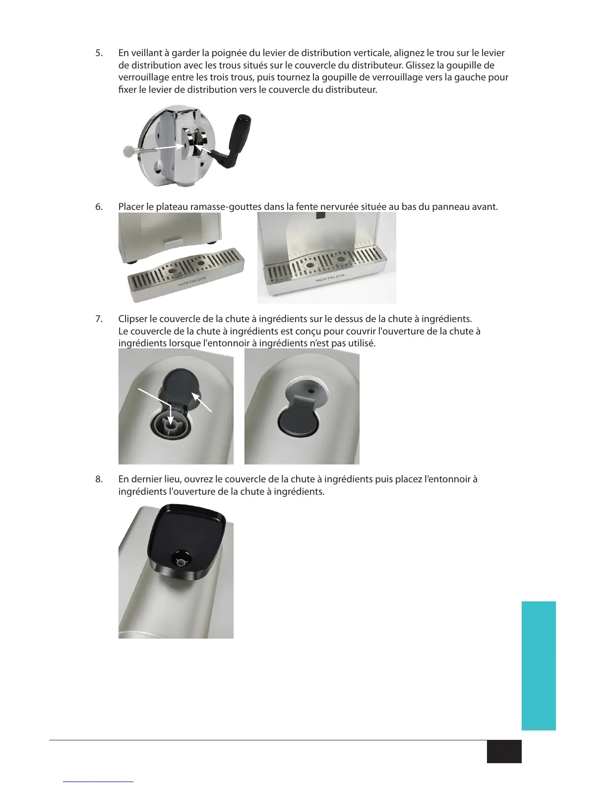7. Clipser le couvercle de la chute à ingrédients sur le dessus de la chute à ingrédients.