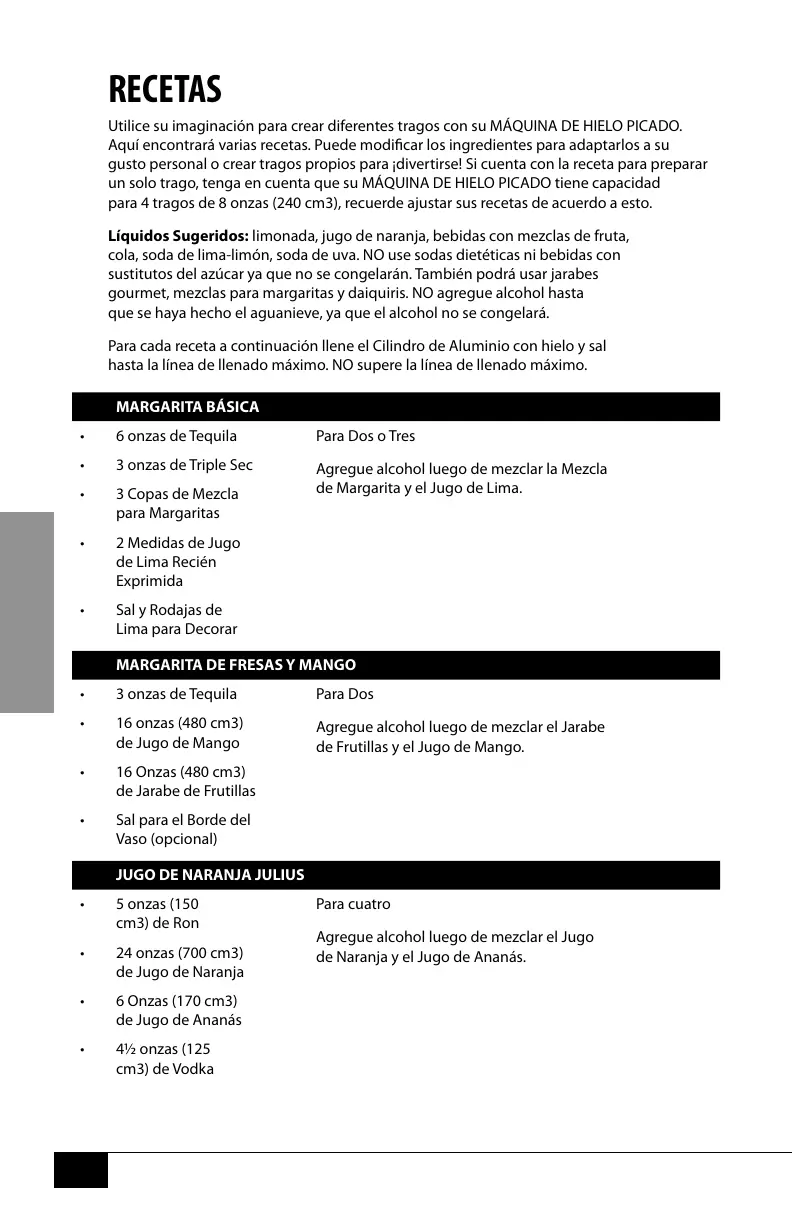 para 4 tragos de 8 onzas (240 cm3), recuerde ajustar sus recetas de acuerdo a esto.
