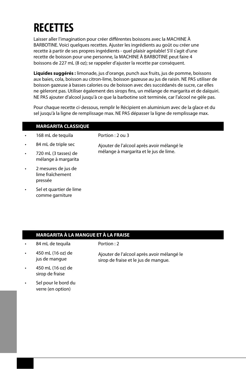 ne gèleront pas. Utiliser également des sirops ns, un mélange de margarita et de daïquiri.