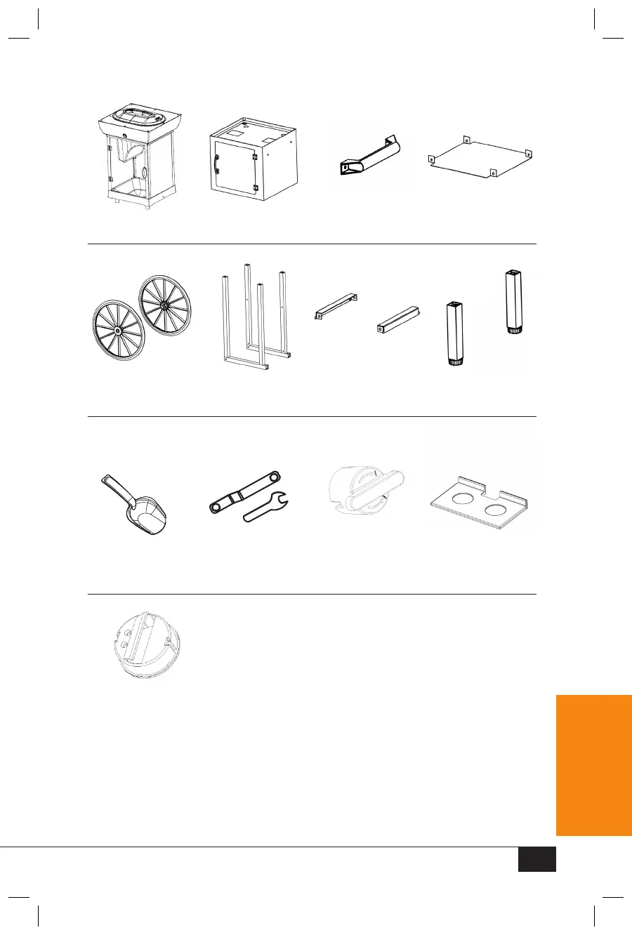 (I) Pelle à glace (J) Clé (K) Outil de démontage (L) Porte-cornet