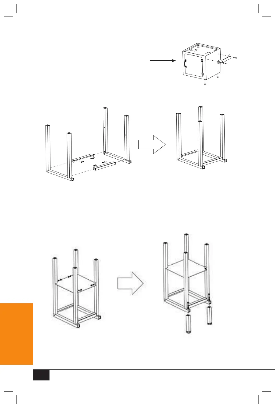 4. Fixer les Montants (H) aux extrémités saillantes de la Base (F) à l'aide de deux