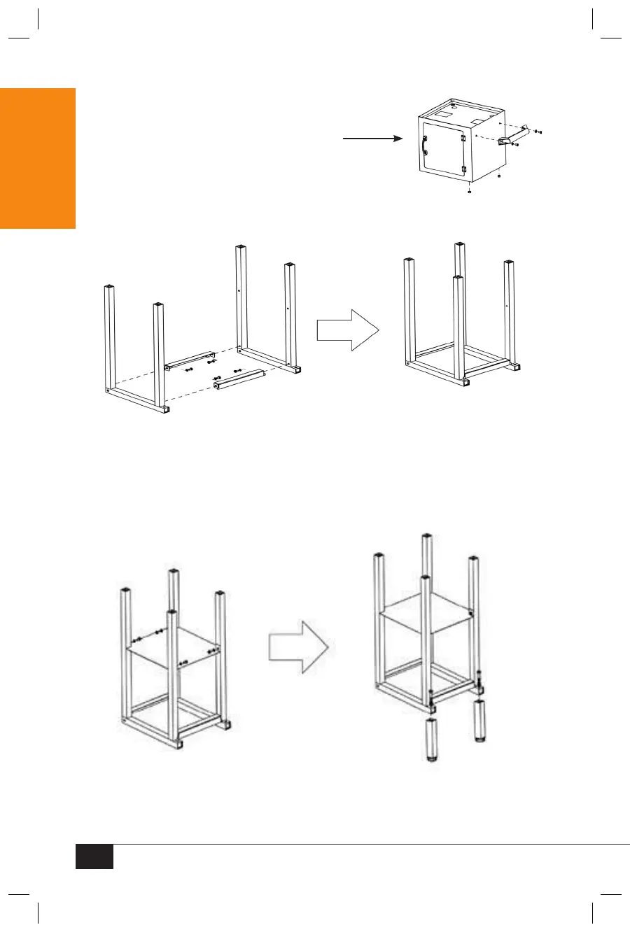 2. Attach Cross Bar (G) to Base Support (F) and secure with