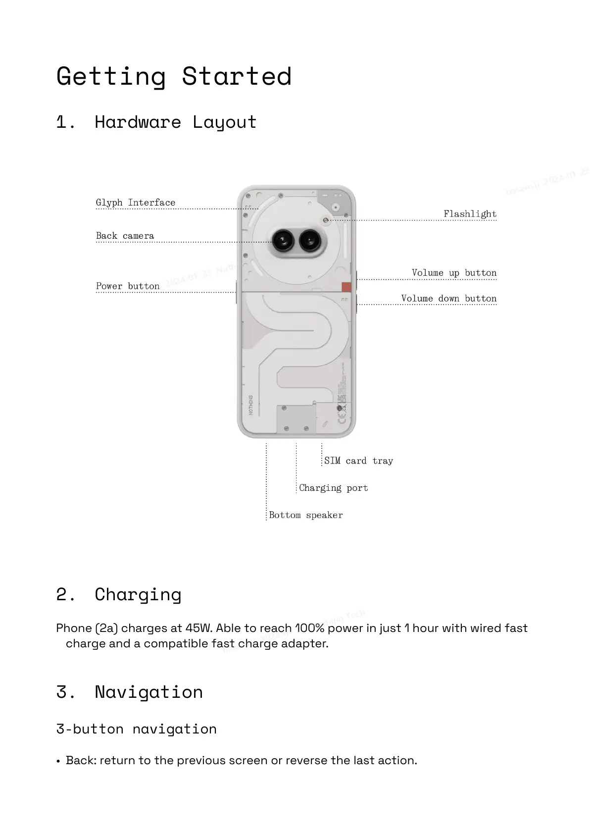 Nothing Phone 2a - Getting Started; Hardware Layout; Charging; Navigation