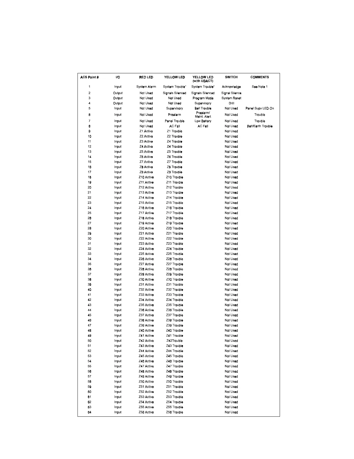 Annunciator on the same control panel will alter the assignments of the yellow LEDs on ACS Points 3, 4, 5, 6, 7