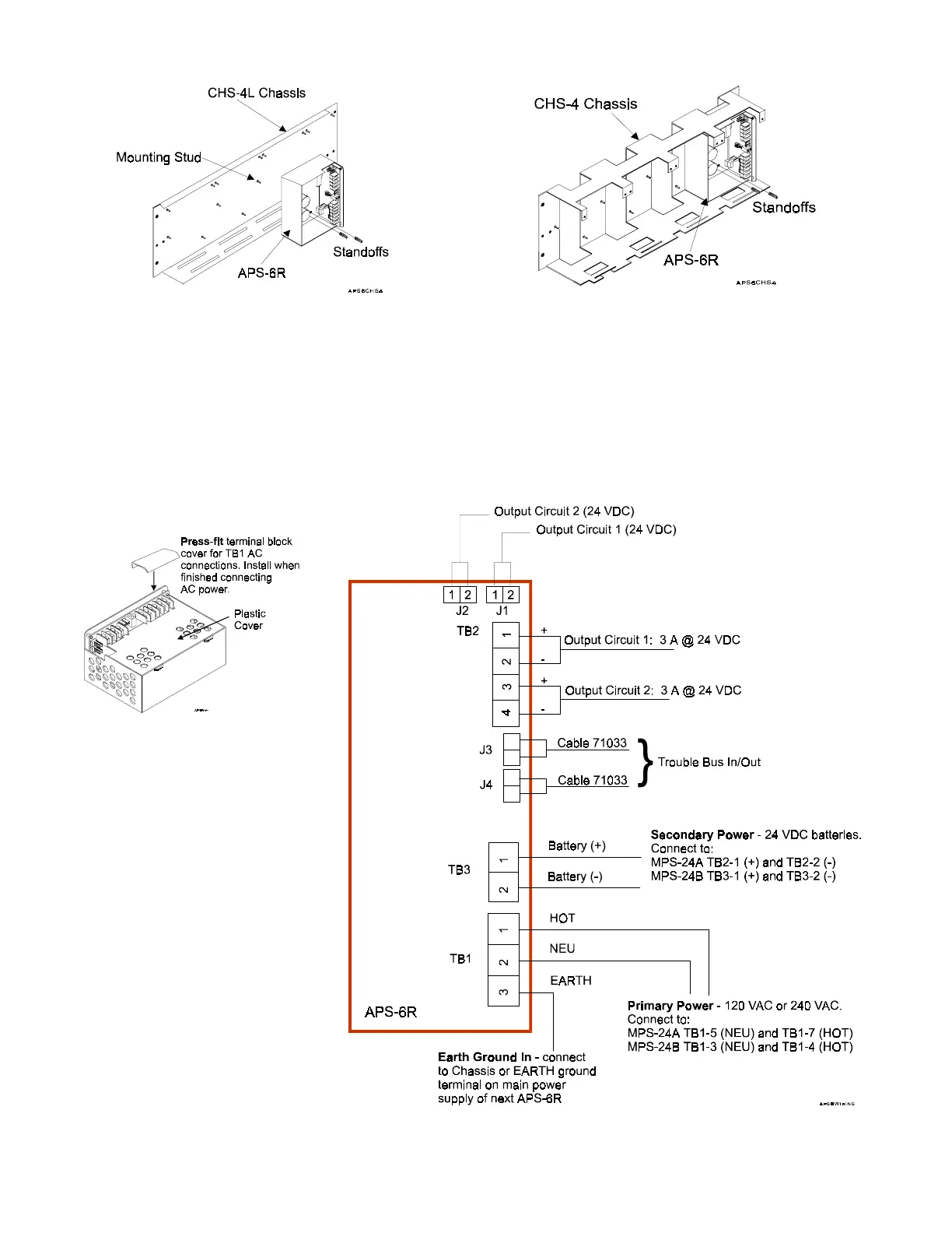 and AC line-connected circuits are present in the APS-6R. Turn off