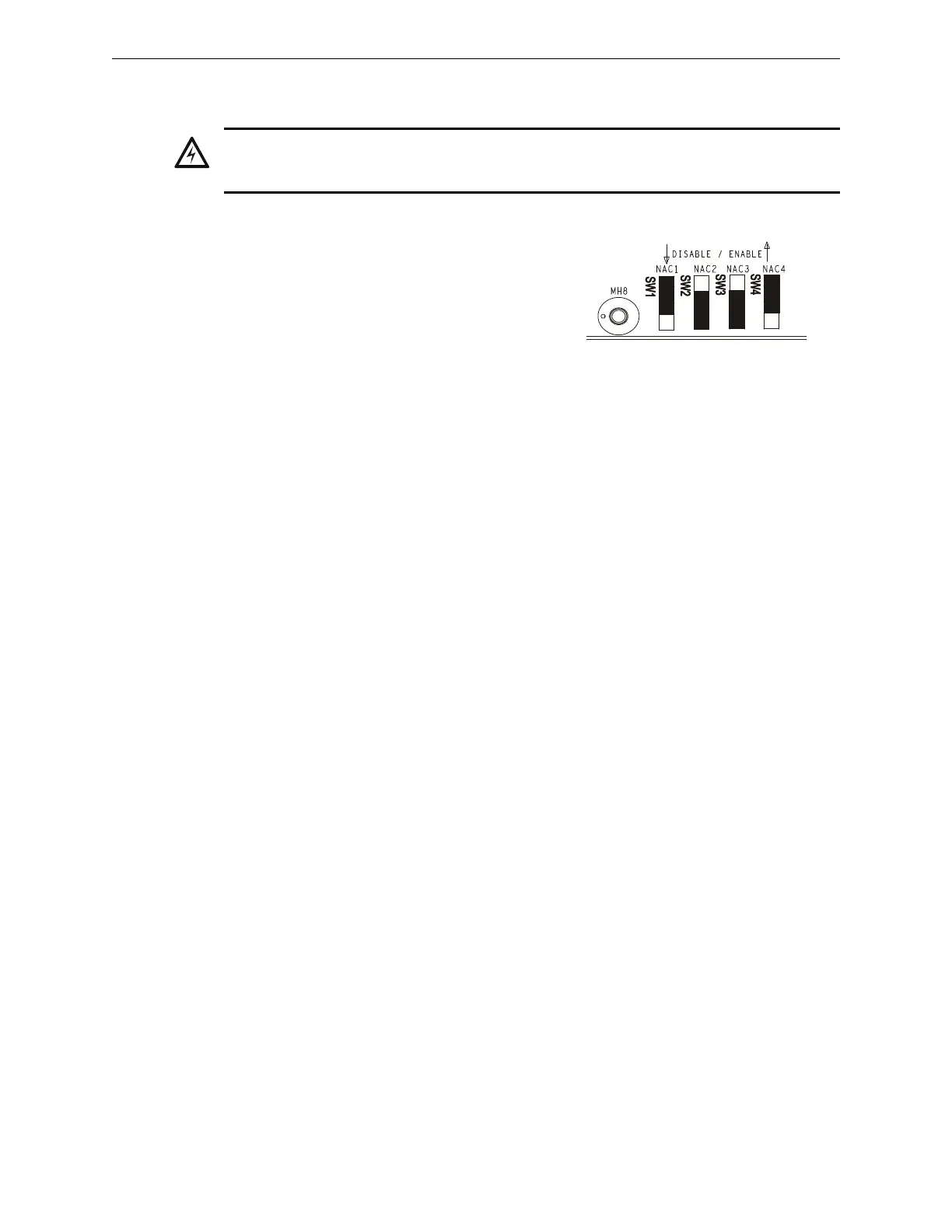 Do not enable the BACKUP option switch for any of the four Notification Appliance Circuits (NACs) if