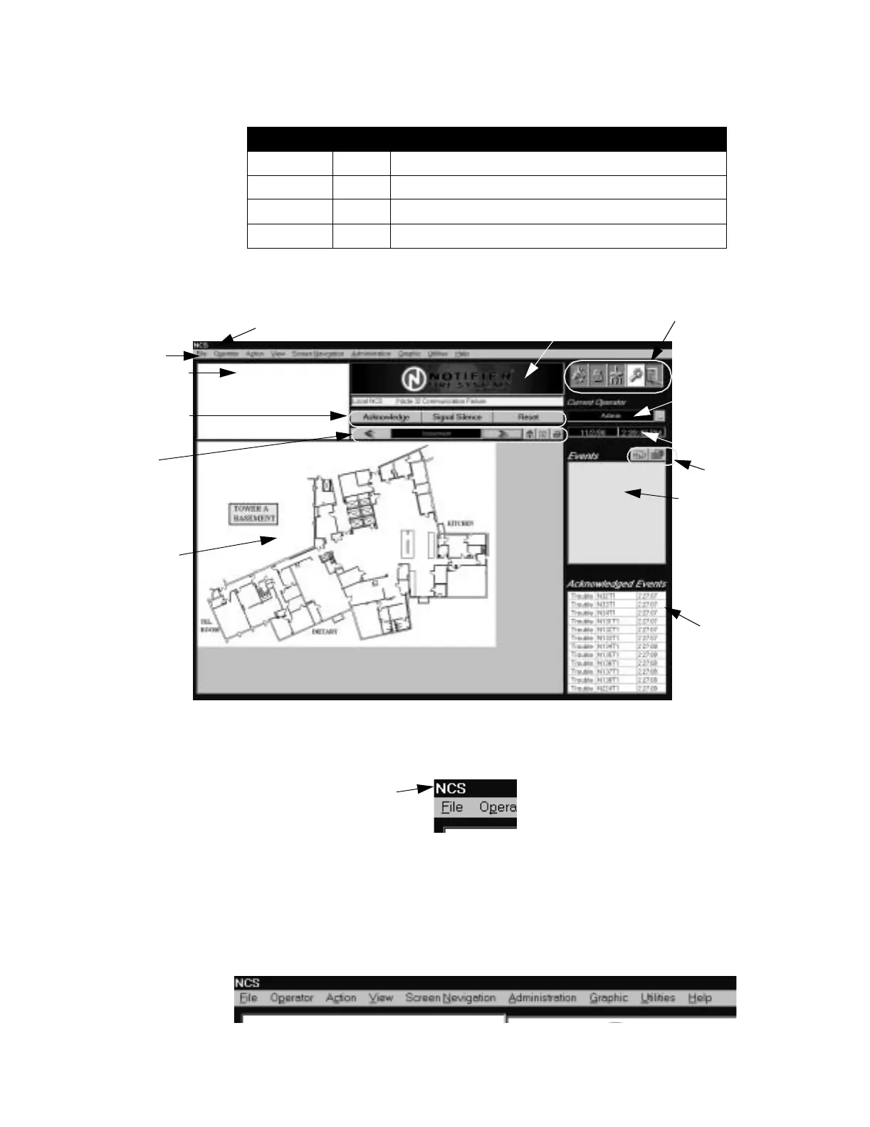 The menu bar lists the available menus in the NCS. A menu contains a list of commands that