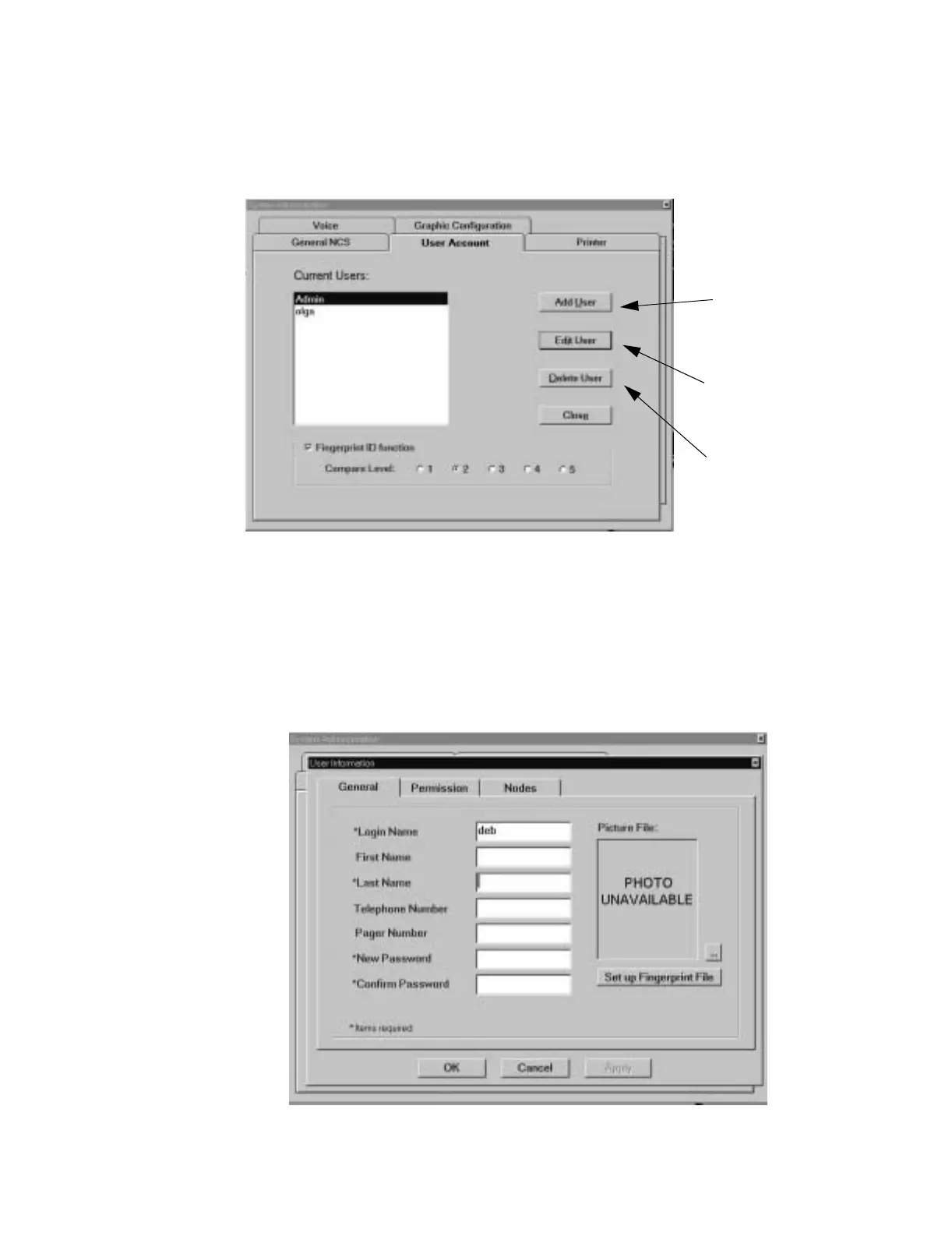 This dialog box also lets the user add, edit and delete users from the NCS. To set up a new user on