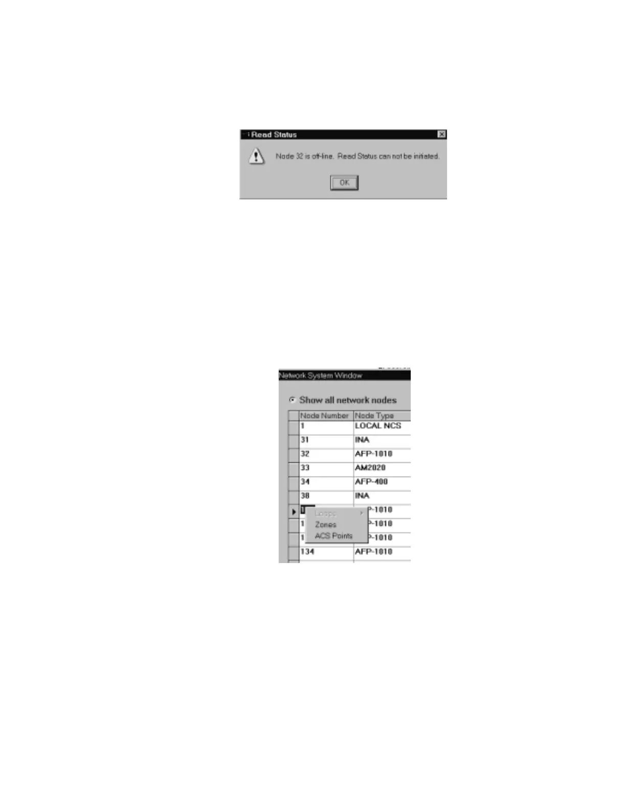 menu, if read status is supported by that node. If it is not, an error message will be displayed, refer