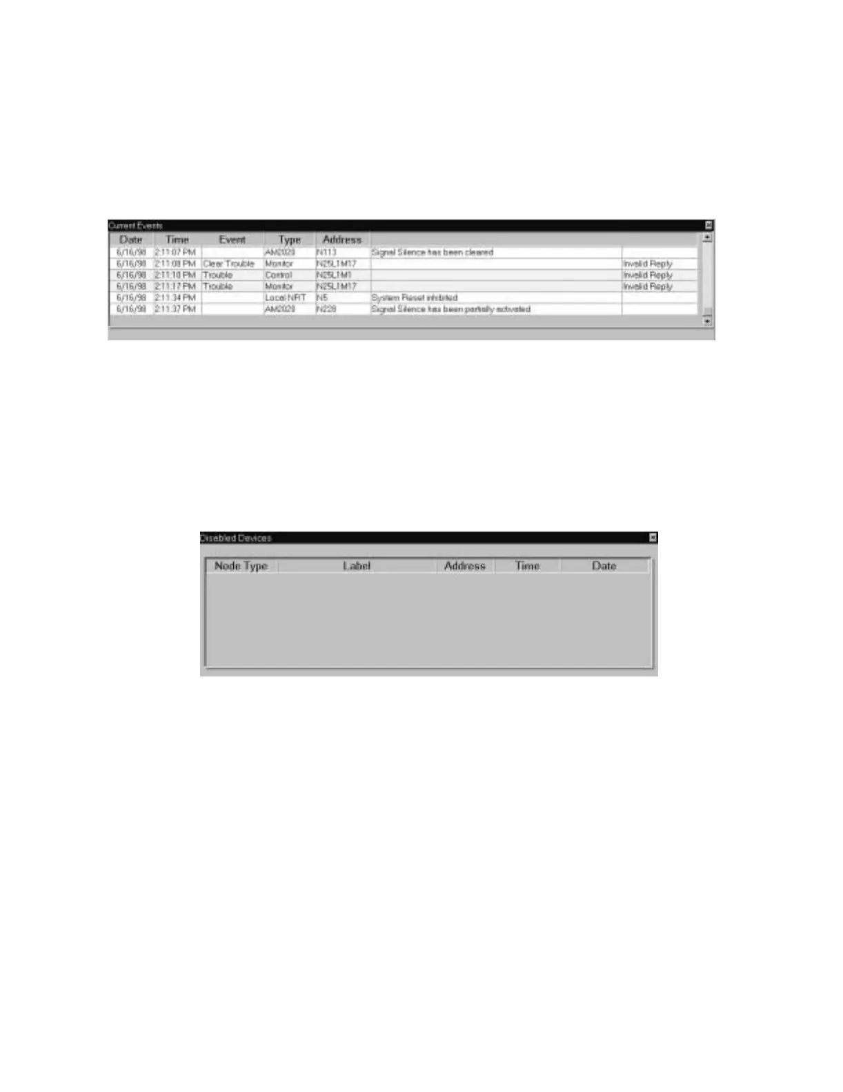 previously closed. The NCS provides the ability to print all events in the disabled device window.