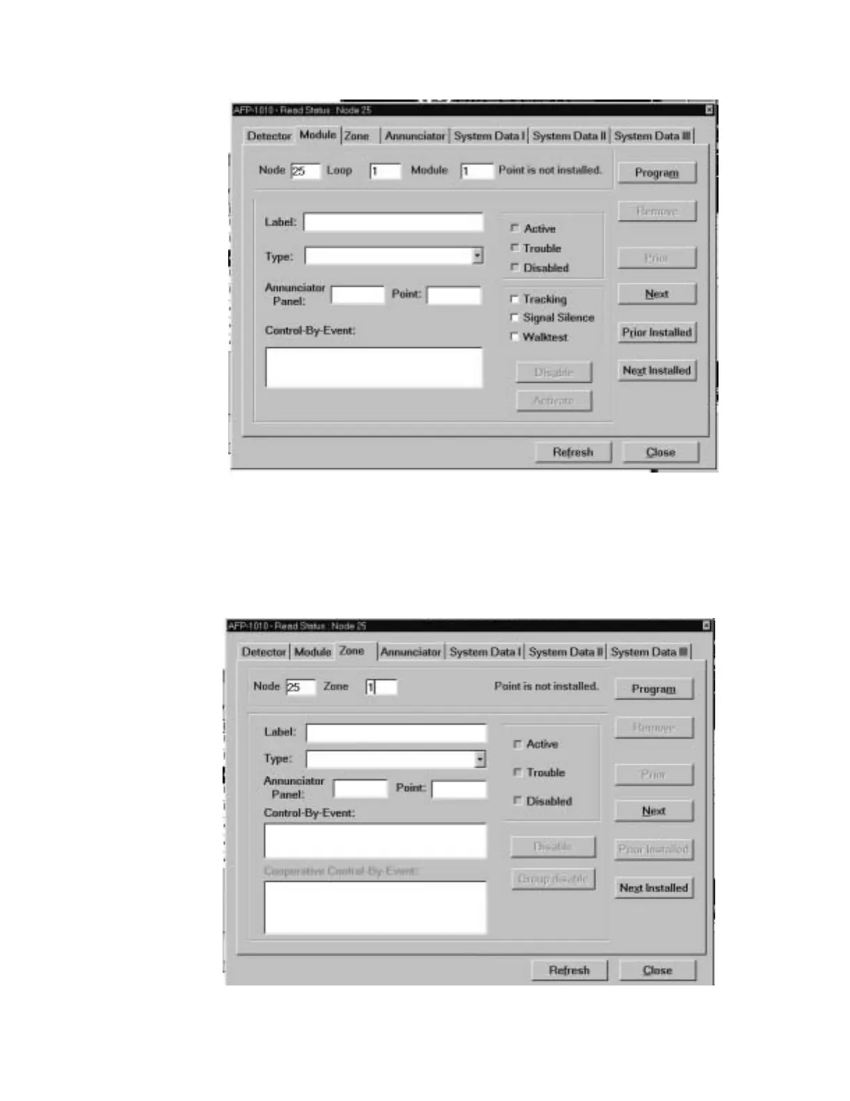 the Zone tab. Enter the zone number desired to perform Read Status. Select Program. The Zone