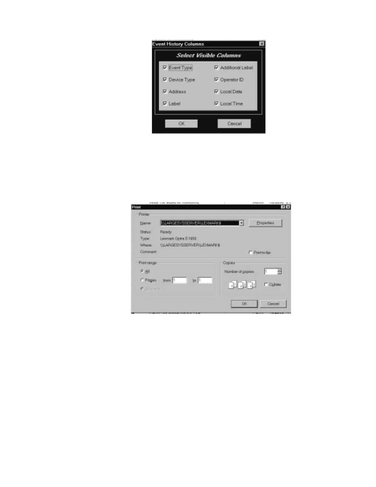 printer dialog box, (refer to Figure 4.10) enabling the selection of a printer. The printout consists of