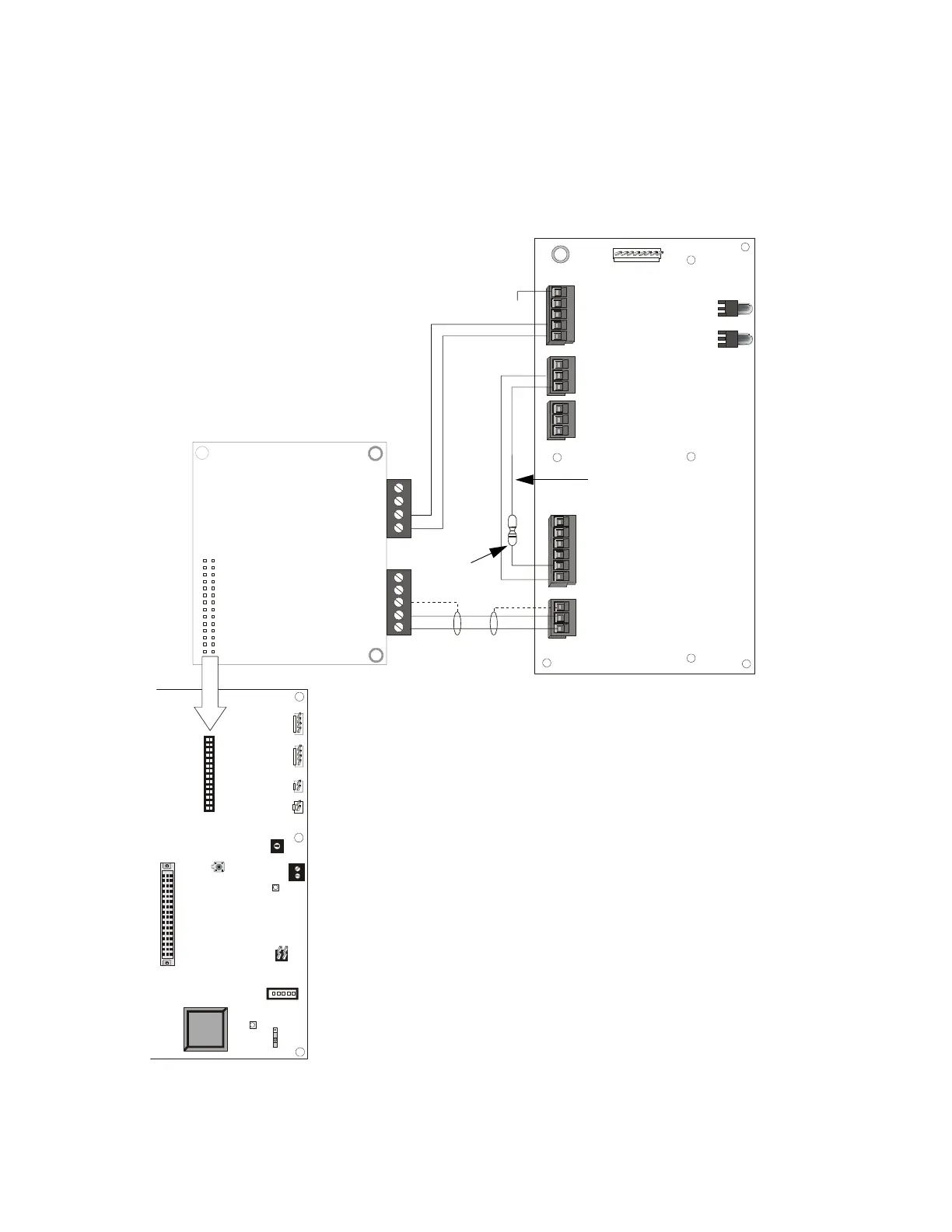 The Remote Microphone Interface board plugs into connector J8 on the XPIQ-MB motherboard