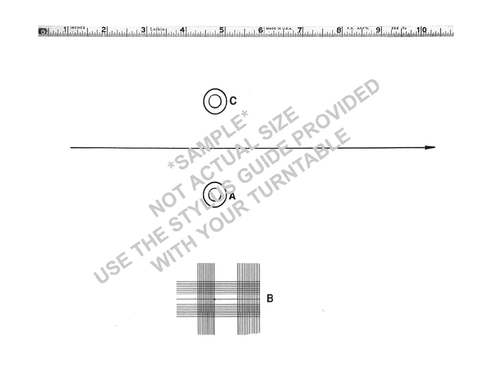 3. Slip hole ‘A’ of the gauge over the turntable spindle.