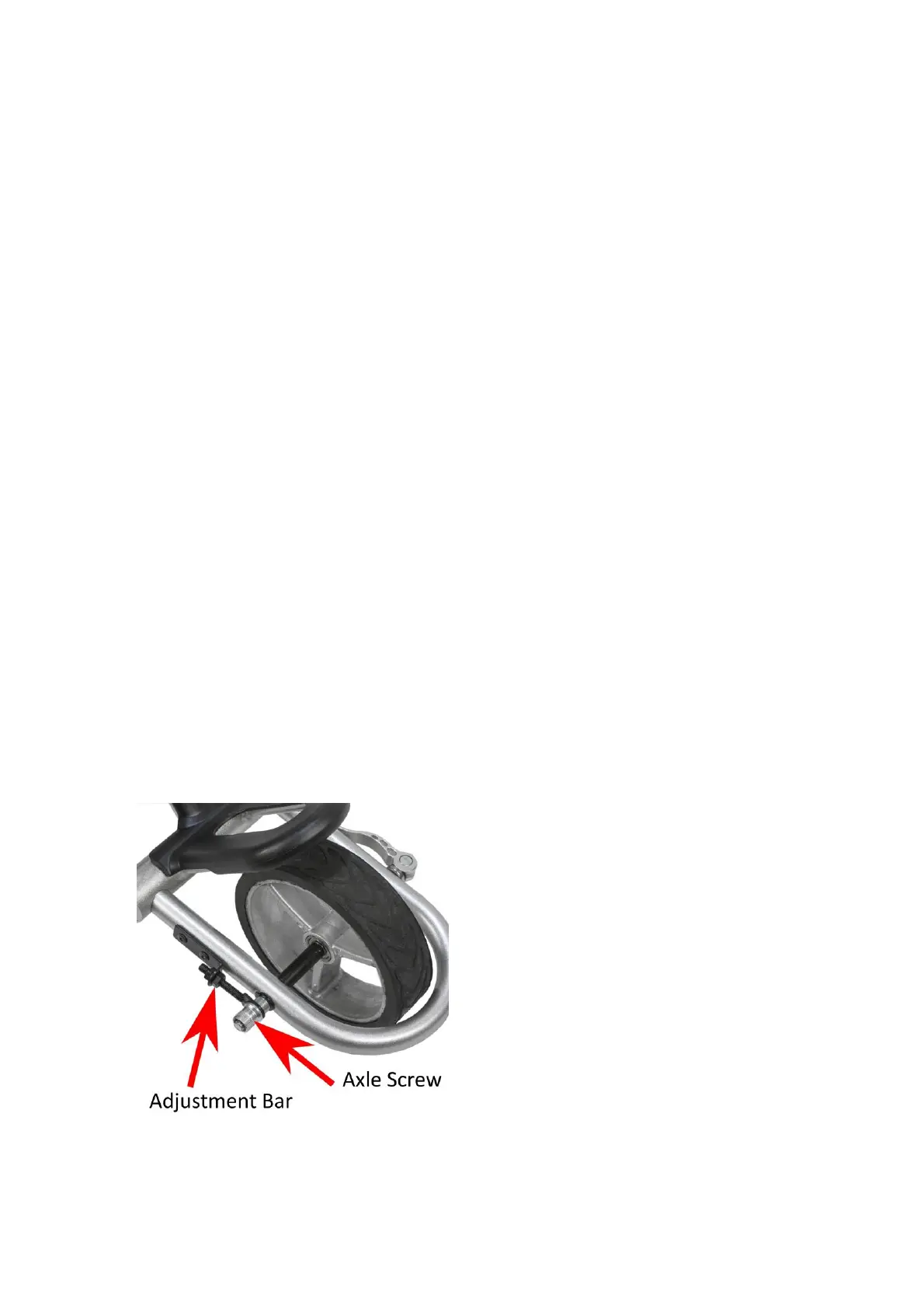 right side of the front wheel and shifting the axle accordingly. Fasten screws in-reverse order