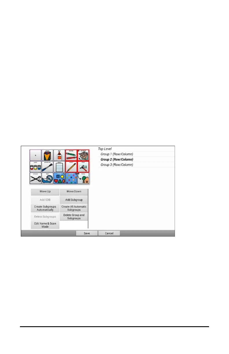 The Scan Editor allows you to set up groups and subgroups of buttons