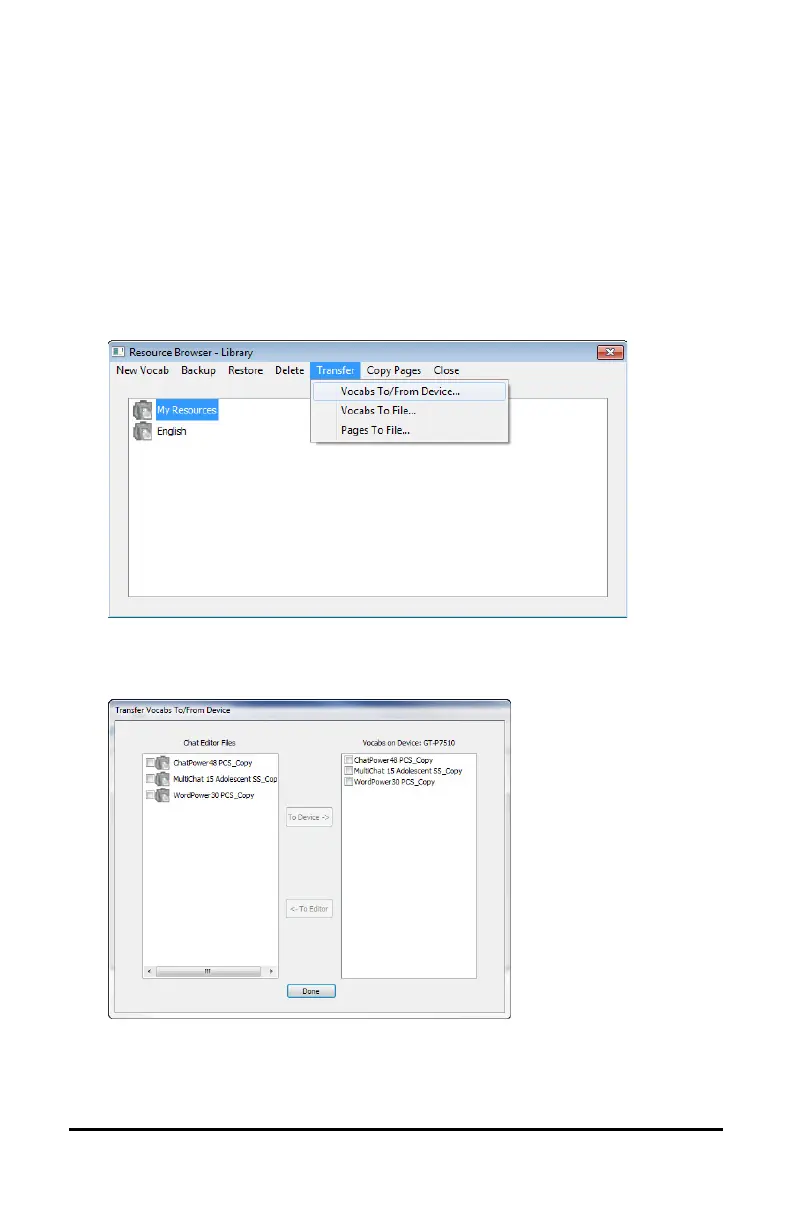 4. From the Resource Browser, select Transfer, and then select Vocabs