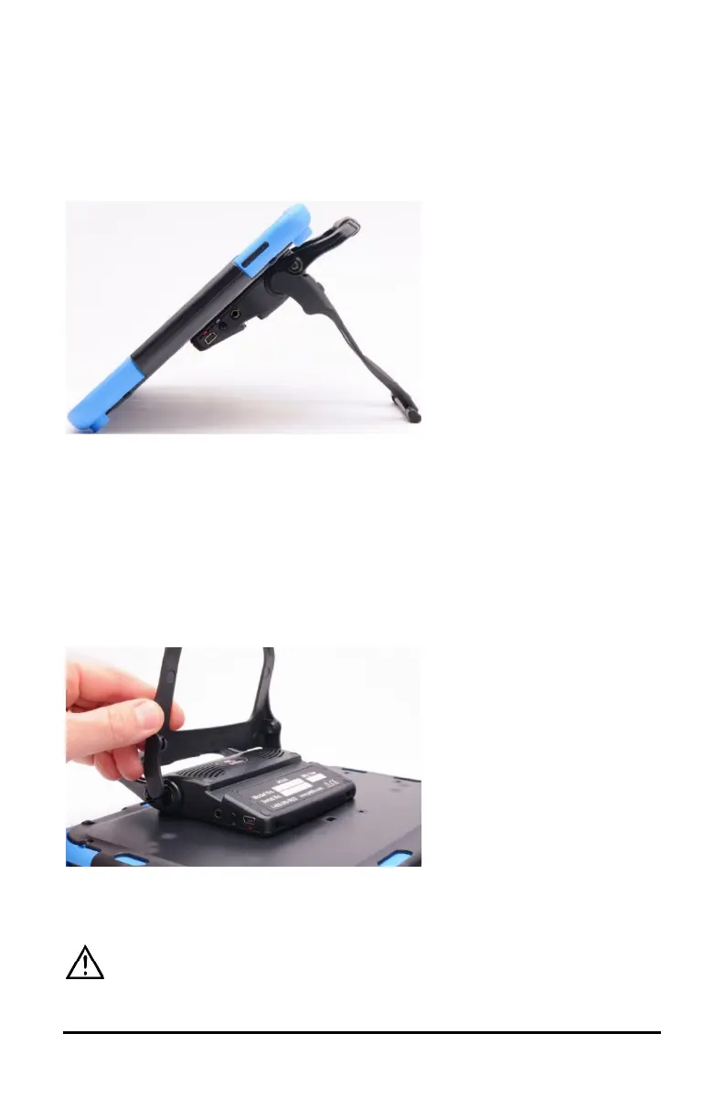 secured to the handle with a tension fit. Expand the sides of the stand