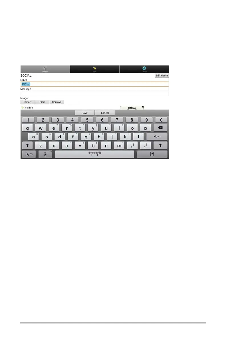Tap in the Label or Message box to display the keyboard.