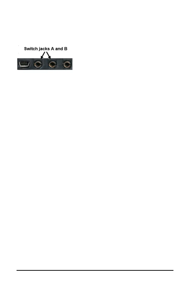 To use an external switch, plug the switch into either switch jack A or