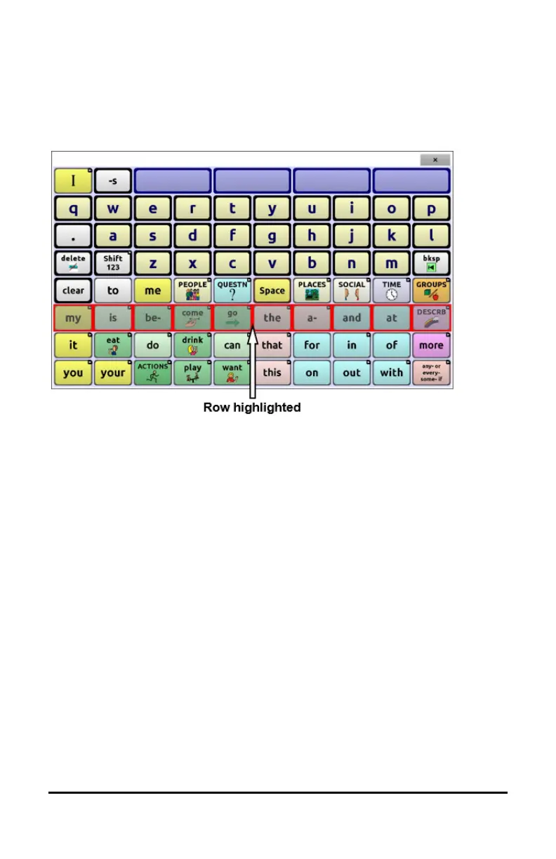 A row/column scan highlights each row of buttons beginning with the