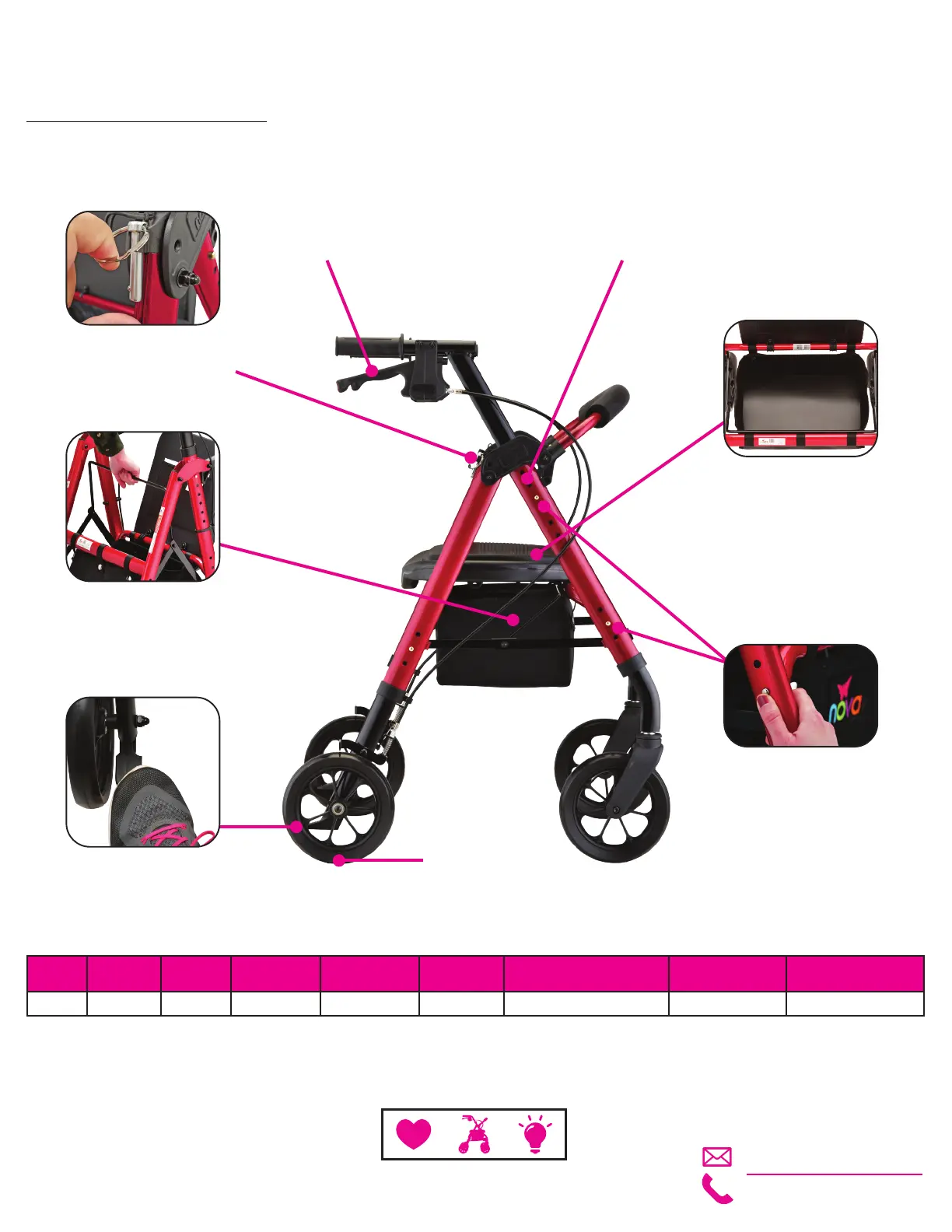 21 lb 5’4” - 6’2” 32.5” - 38.5” 22.5” 20”, 21” & 22” 20w” x 14d” 17”w x 7”h x 9”d