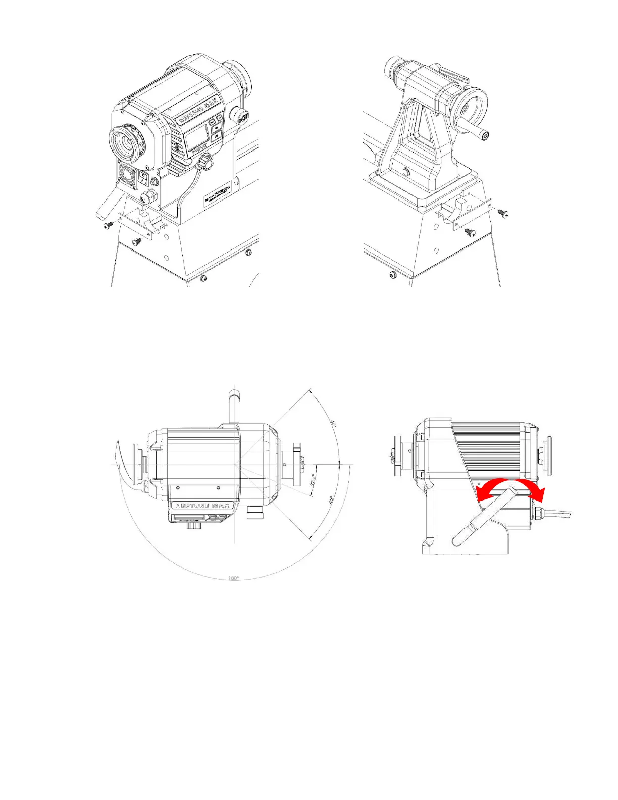 1. To unlock the headstock, push the locking handle backwards or lock the headstock by pushing the handle