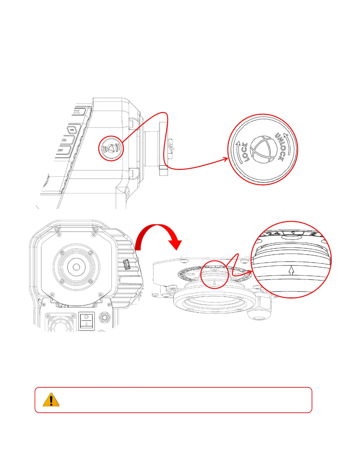 2. To lock the spindle, lift up and turn the Locking Knob into the LOCK position until the internal pin engaged into