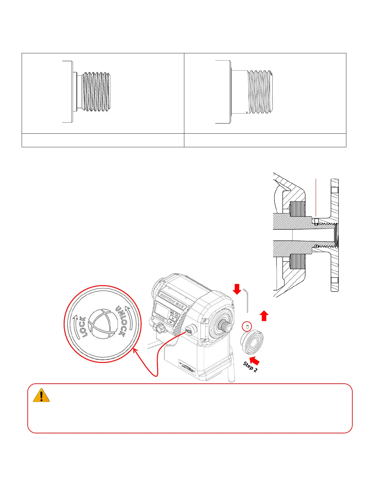 installing or removing the Faceplate or Chuck from the spindle, the side-locking grub screws MUST