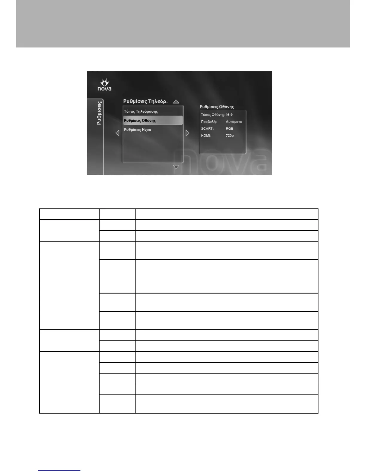 Μενού > Ρυθμίσεις > Τεχνικές Ρυθμίσεις > Ρυθμίσεις Τηλεόρασης > Ρυθμίσεις Οθόνης