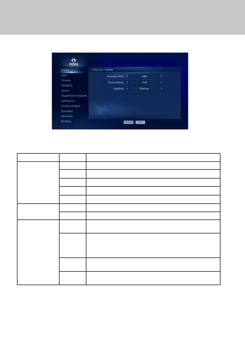 Εχετε την δυνατότητα να ρυθμίσετε τις εξόδους εικόνας στο Μενού Εικόνα. Για πρόσβαση σε αυτό το Μενού: