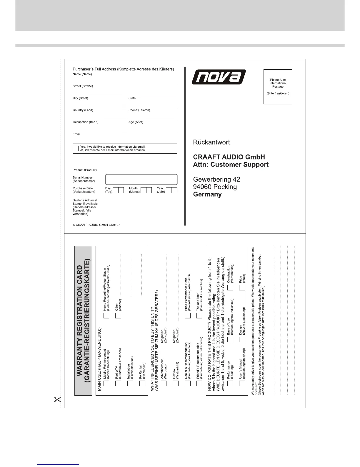 NOVA by CRAAFT AUDIO GmbH • Gewerbering 42 • 94060 Pocking / Germany • Phone: +49-8531-3171-0 • Fax: +49-8531-3171-25